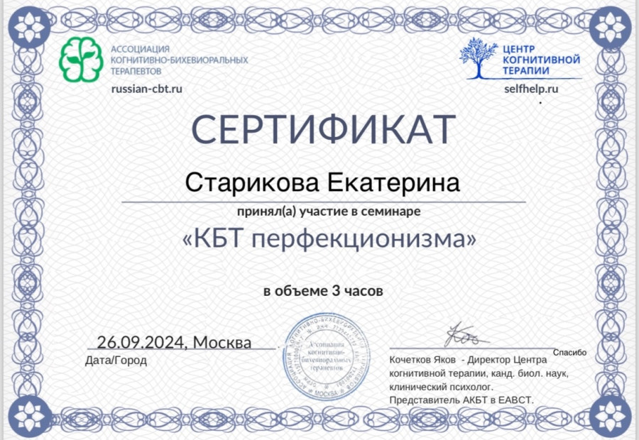 Направление: Когнитивно-поведенческая терапия (КПТ, КБТ)