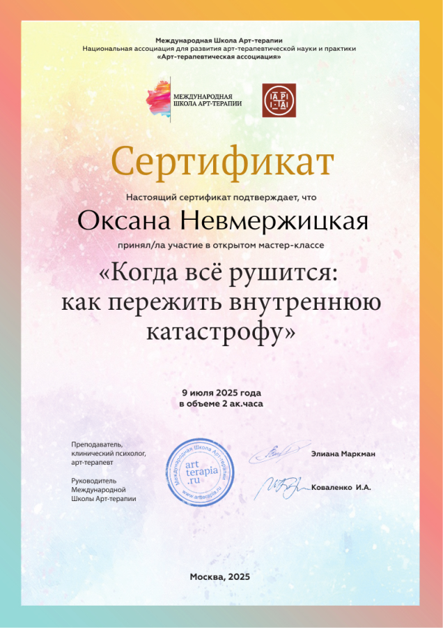 Порой может казаться, что жизненные обстоятельства с различными трудностями и задачами нерешаемы, что никто не способен понять и оказать ту поддержку, в которой нуждаемся. Очень сложно находиться в подобном состоянии. Психологическая помощь дает возможность обрести внутренние силы для изменений, снижает уровень тревоги и позволяет улучшить отношения с близкими. В своей работе я применяю целостный подход к личности клиента, уделяя внимание духовному, эмоциональному, интеллектуальному и физическому аспектам. Я нацелена на глубокую работу в изменении мышления, убеждениях и поведении для достижения устойчивого личностного роста. Я уверена в том, что в каждом есть потенциал к тому, чтобы справляться с любыми проблемами и достигать желаемое. С радостью буду сопровождать вас на пути к гармоничной жизни. Обращайтесь!