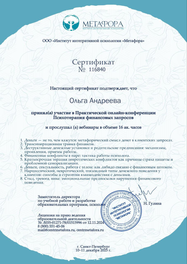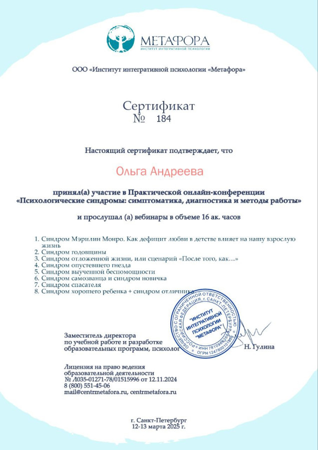 В своей работе использую интегративный подход — сочетаю техники разных психотерапевтических школ в зависимости от индивидуального запроса.